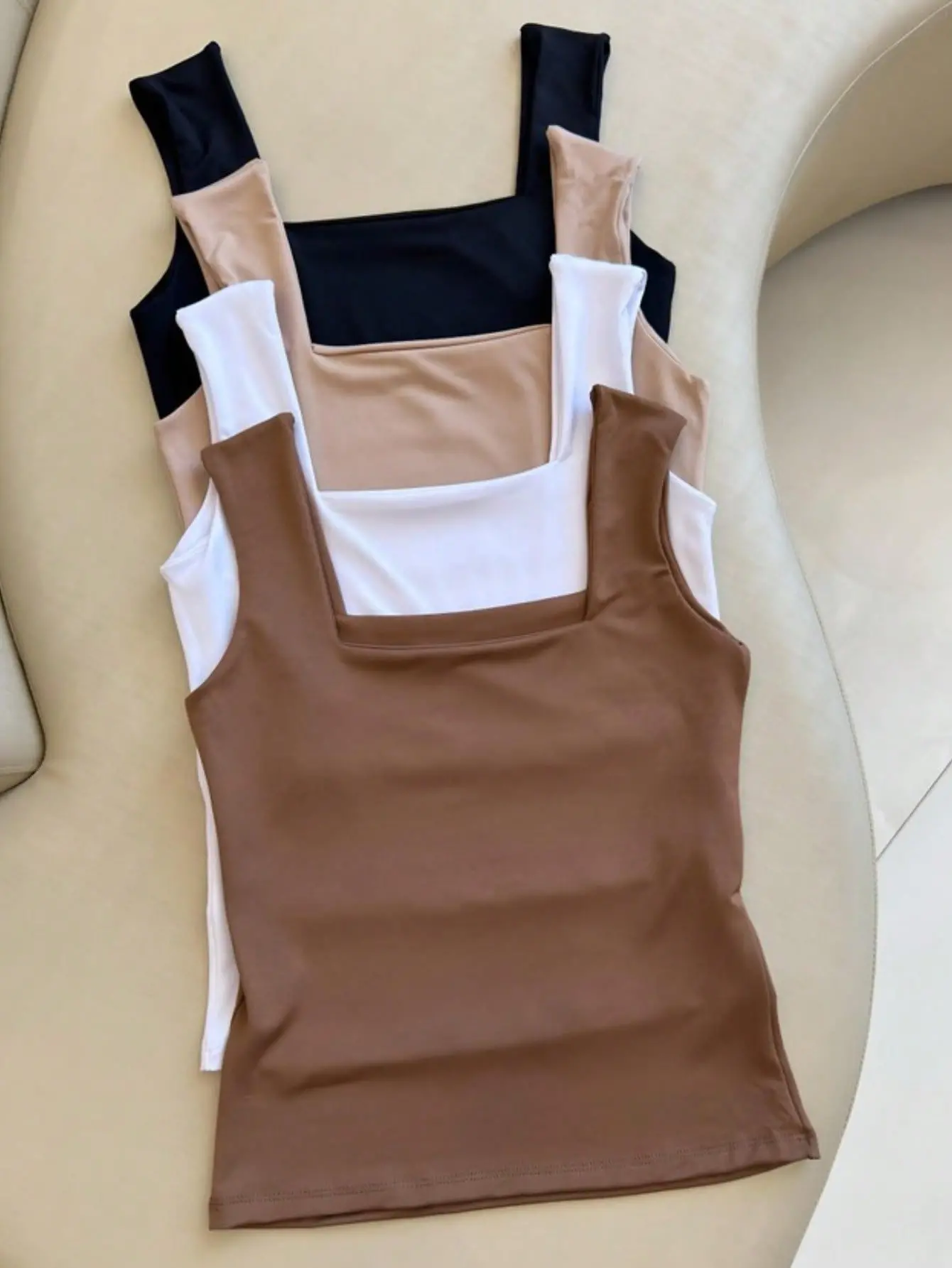 Kit 4 Blusas Feminina Regata Decote Quadrado Reto Suplex