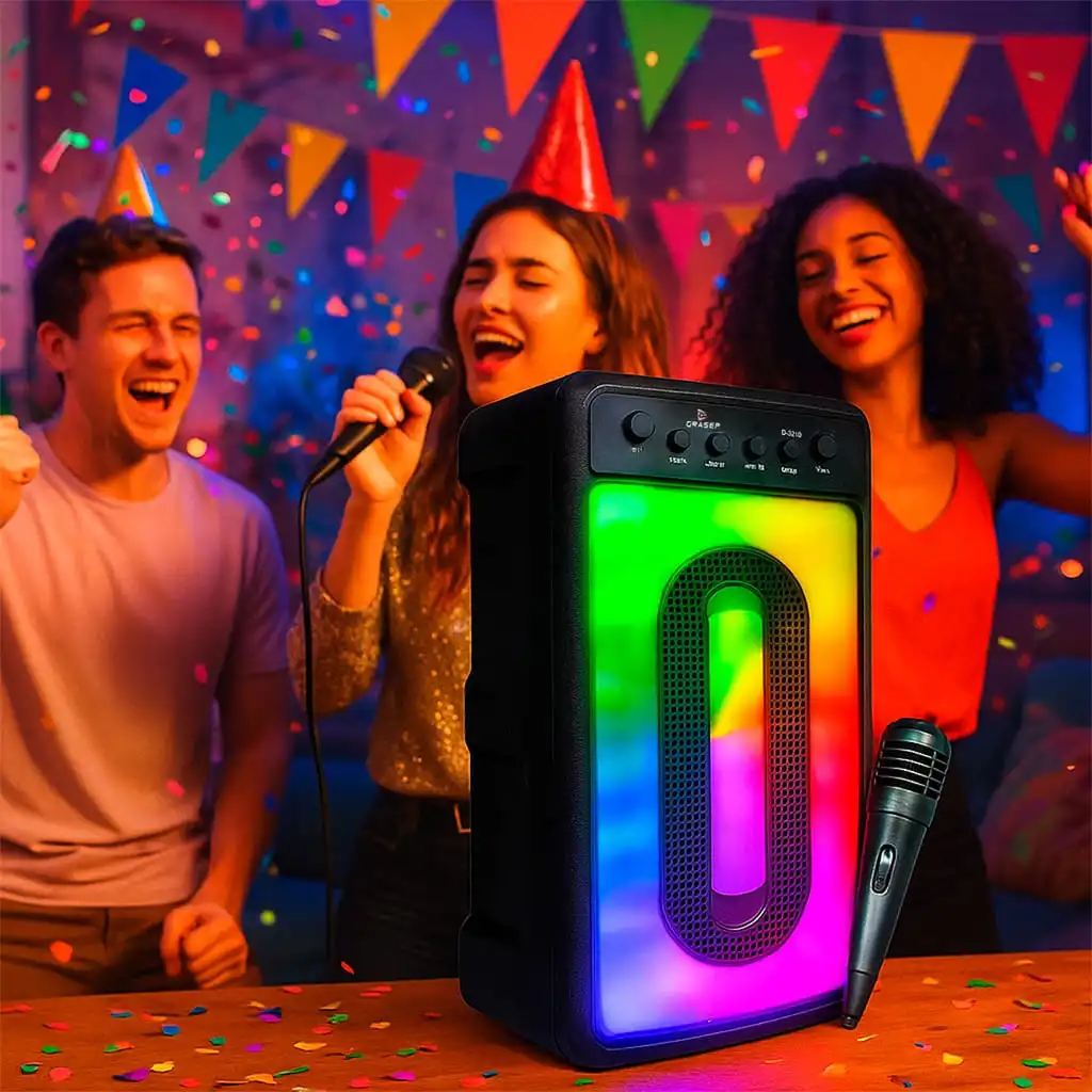 Caixa Som Bluetooth Amplificada Alta Potente LED RGB Aux P2 Micro SD USB Radio FM Acompanha Microfone Karaoke