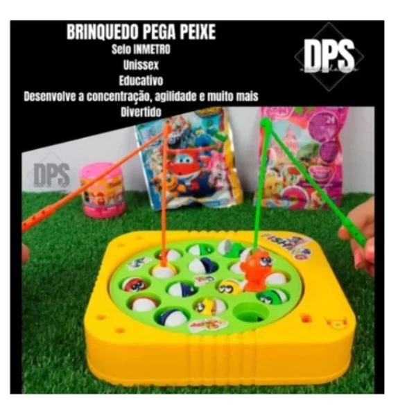Para diversão em família tanto para as crianças como os adultos. Para começar basta escolher a sua vara de pescar e ligar o aparelho. Quem pescar mais peixes será o vencedor da nossa pescaria divertida!!