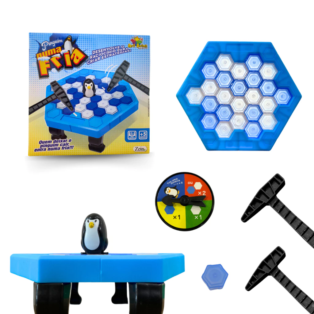 Pinguim Numa Fria: Em "Pinguim numa fria", também conhecido como Pinguim quebra gelo, os jogadores alternam tirando gelo de uma plataforma, tendo que tirar gelos azuis, brancos, ou passando a vez. Caso você, ao retirar o gelo da plataforma, deixar o pinguim cair dela, você perde!