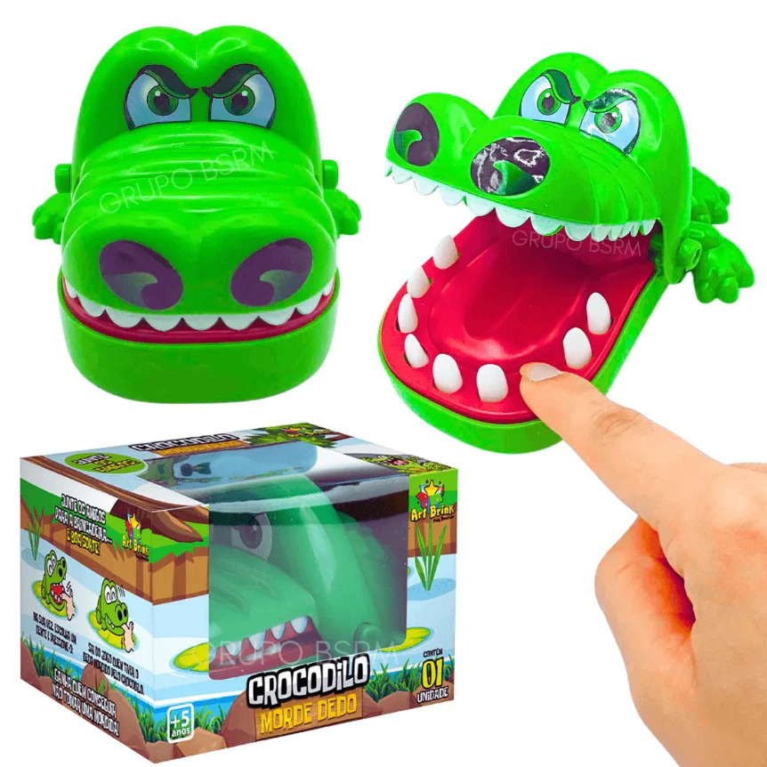 Crocodilo Morde Dedo: Os jogadores alternam-se pressionando os dentes do crocodilo. Cuidado! Um dos dentes aciona a mandíbula do crocodilo, fazendo-o fechar a boca. O jogador que fizer o crocodilo fechar a boca é eliminado da rodada.