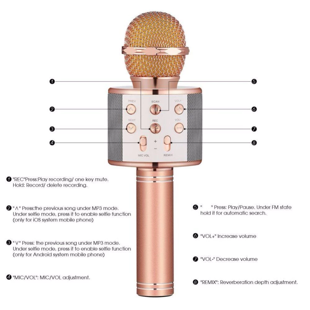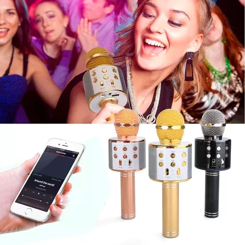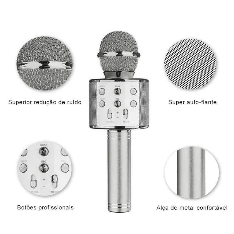 WS-858 - Microfone Infantil de Karaoke Microfone de Brinquedo Sem Fio Bluetooth
