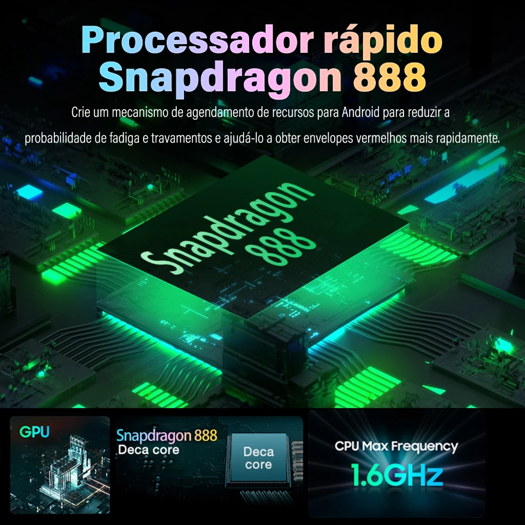 Desempenho principal: Processador Snapdragon 888 octa-core + 12 GB de memória RAM, multitarefa suave sem travamentos