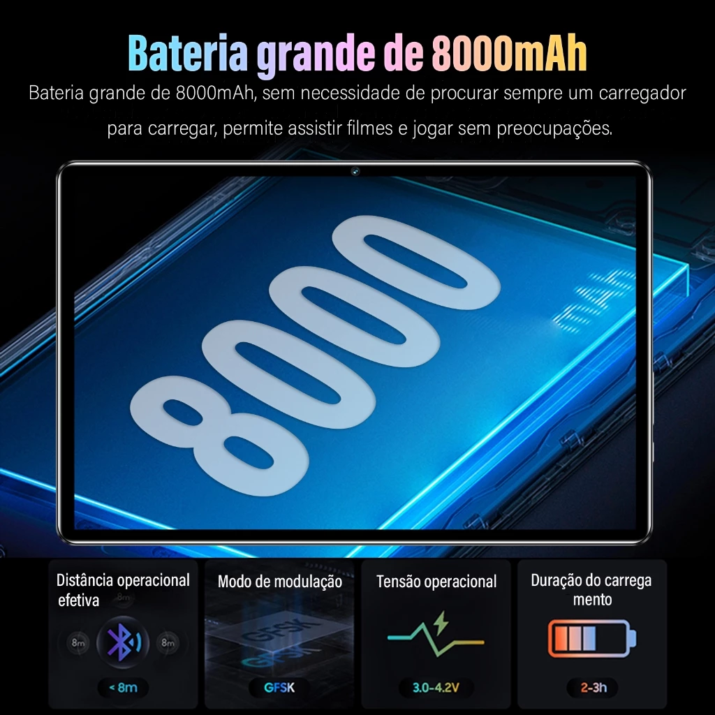 Bateria de 8000 mAh de alta duração, suporta carregamento rápido, bateria de longa duração: Bateria de 8000 mAh de alta duração, suporta carregamento rápido, bateria de longa duração o dia todo