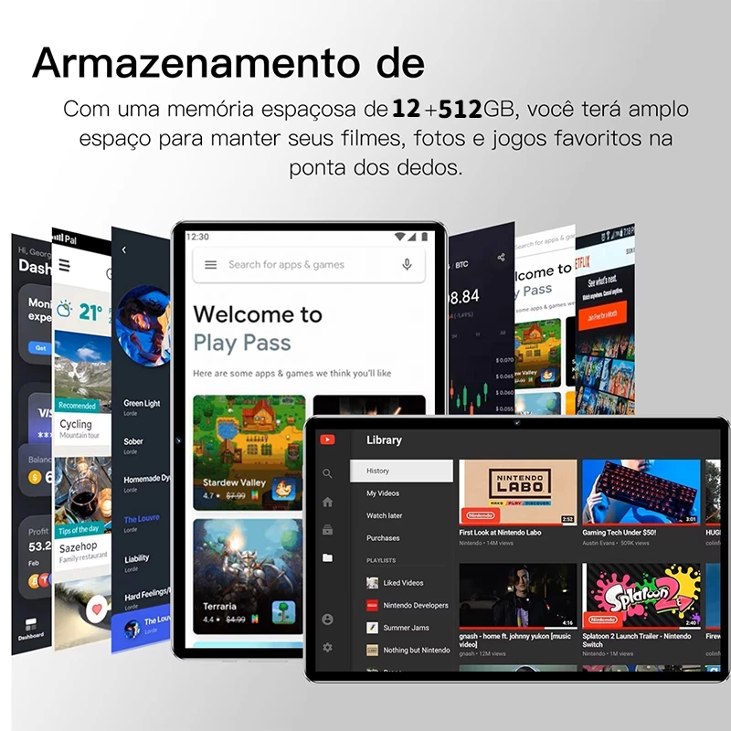 Grande capacidade de armazenamento: 512 GB de ROM + cartão de memória expansÃvel de 128 GB, você pode armazenar uma grande quantidade de arquivos à vontade