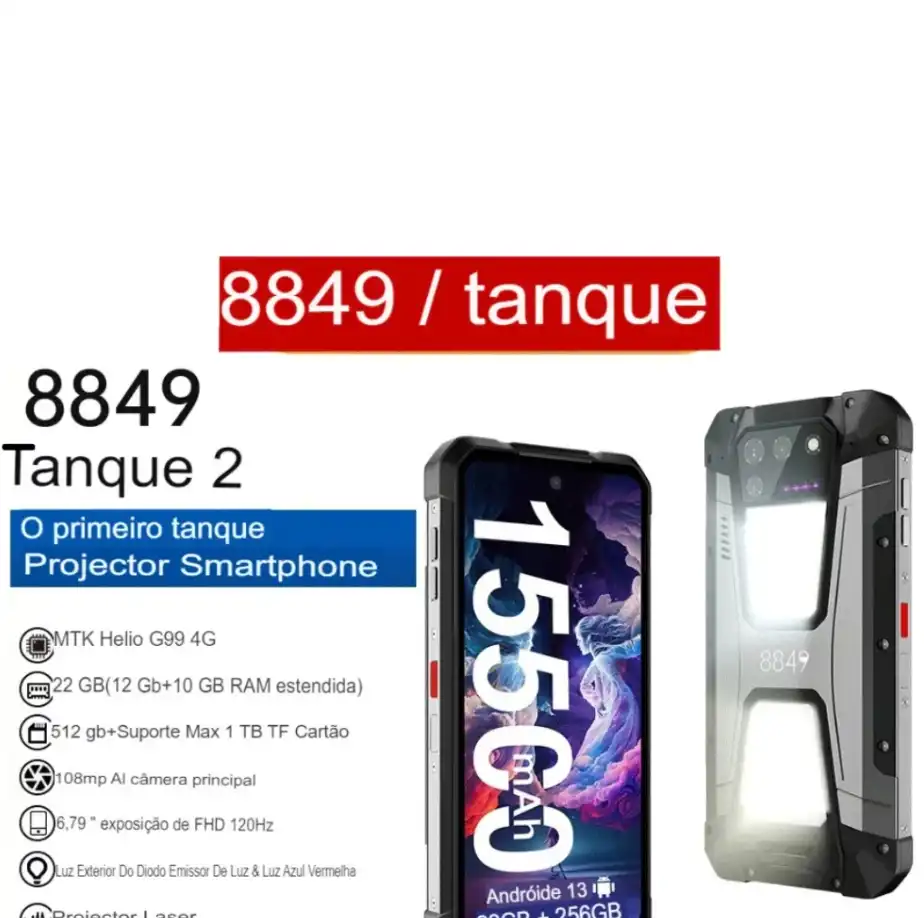 Celular Indestrutivel Unihertz-8849 Tank 2 Pro Celular com Projetor de Imagem 12GB + 256GB