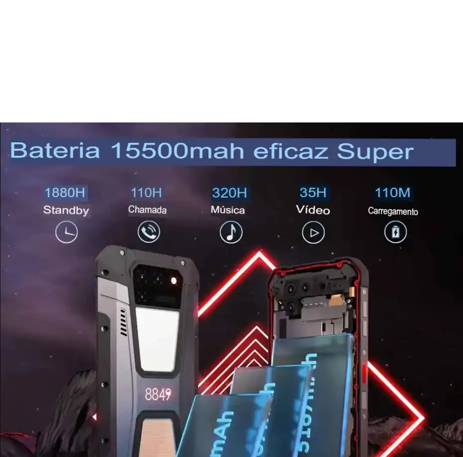 Recursos Adicionais: Um dos destaques é o projetor DLP integrado, que permite projetar imagens e vídeos em superfícies, sendo uma ótima ferramenta para entretenimento ou apresentações em campo. Além disso, o dispositivo possui uma lanterna de alto brilho com vários modos de iluminação e suporte para NFC, permitindo pagamentos por aproximação e outras funcionalidades.