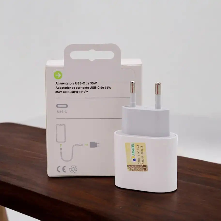 Carregador Para iPhone Fonte 35W Real Criado Especialmente Para Carga do iPhone 15 / 15 Pro / 15 Plus / 15 Pro Max. Com design ultracompacto. Produto no padrão brasileiro de tomadas. Ele permite carregar seu dispositivo Apple de forma rápida e eficiente, fonte bivolt 110v e 220v.