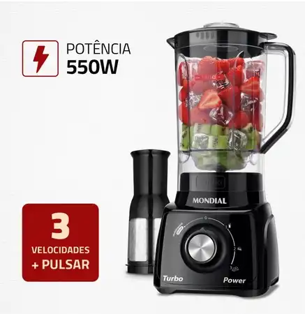 Produto: Liquidificador 3 velocidades Turbo Power preto - L-99FB - Mondial