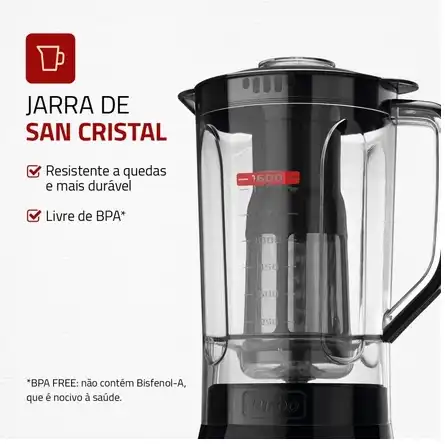 - TAMPA COM COPO DOSADOR: Facilita a adição de ingredientes durante o preparo.