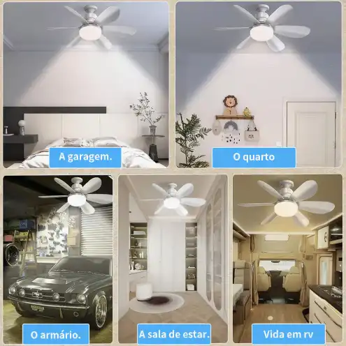 Lâmpada Ventilador de Teto LED com Hélices, Controle Remoto e Timer