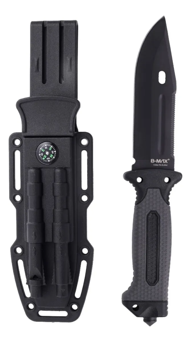 Faca Tatica Com Bainha Bússola Apito Amolador E Pederneira Cor Preta