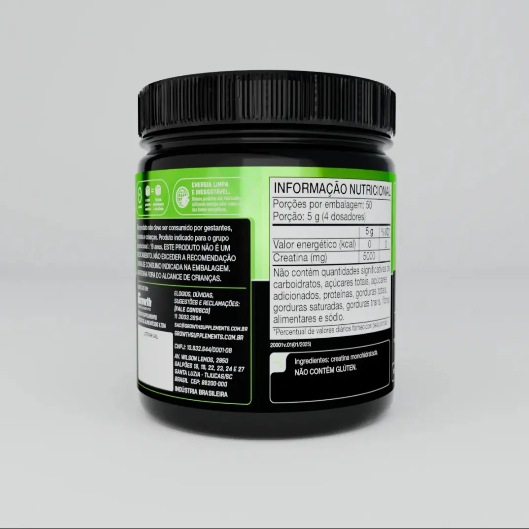 Creatina Monohidratada Growth 250g – Mais Força e Desempenho