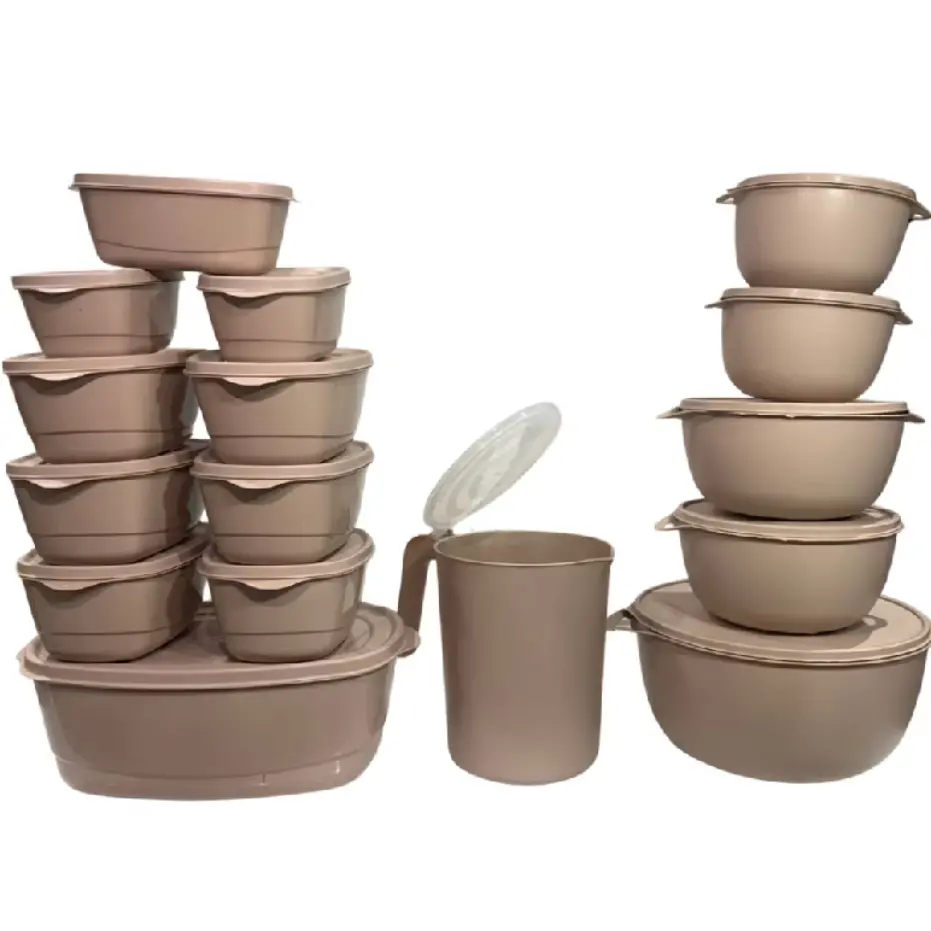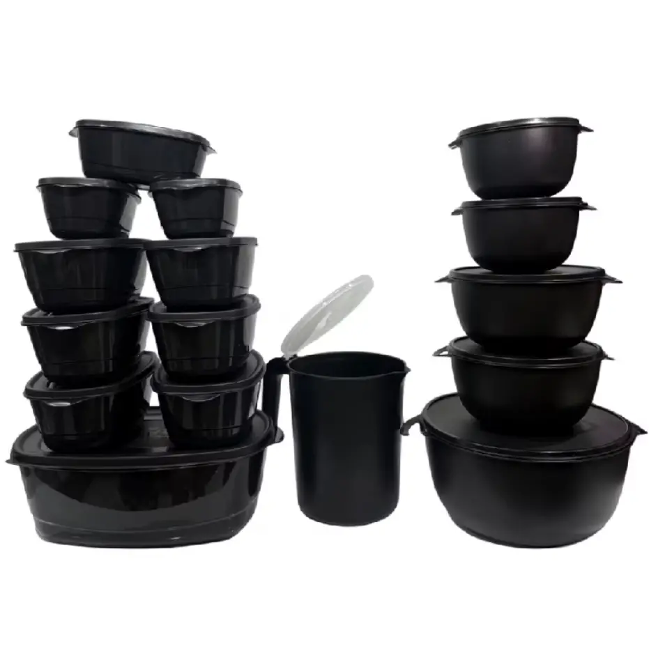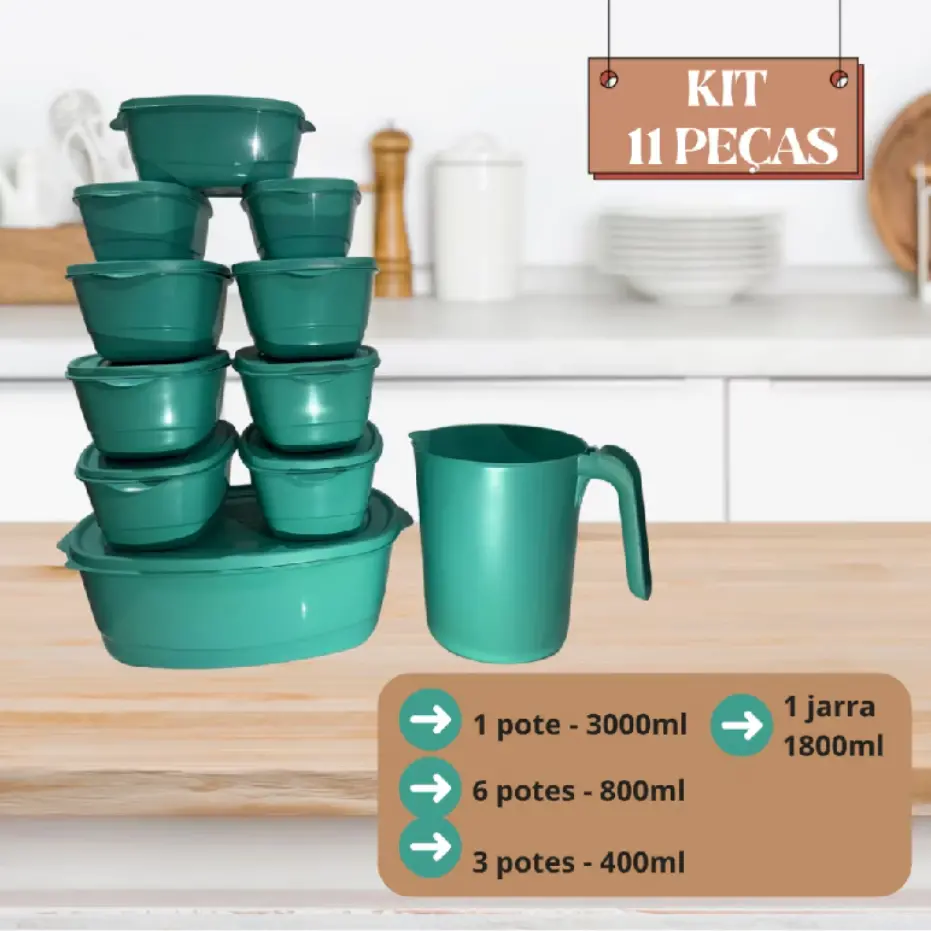 Kit Jogo de Cozinha C/5, C/11 ou 16 Potes de Plastico Hermetico Resistente para Alimentos+Jarra por R$17,99 - R$37,99.