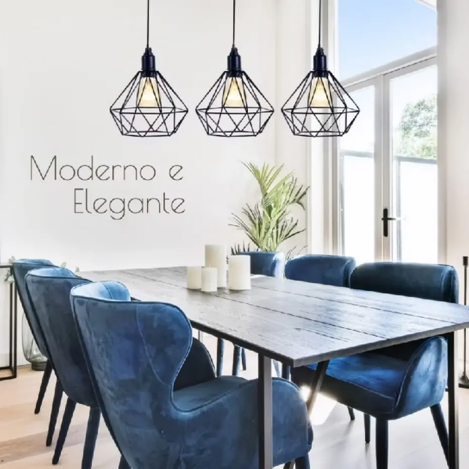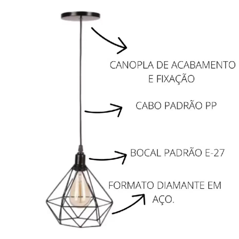 Kit 2 Pendente Lustre Luminária Aramado Diamante Preto . Compre na Shopee agora!