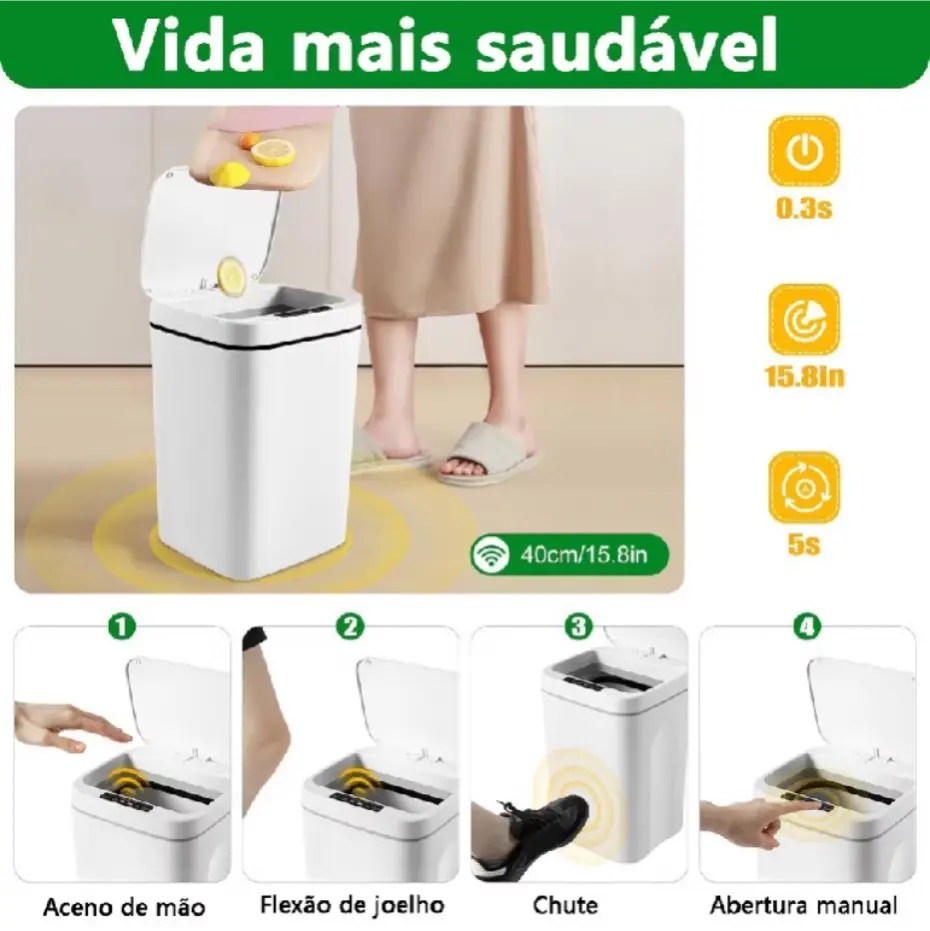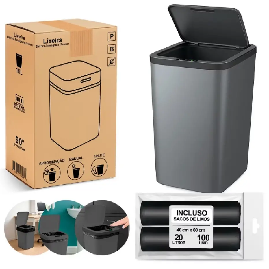 Lixeira Sensor Automática Inteligente de Banheiro Cozinha Escritório Capacidade 16 Litros por R$71,99 - R$79,99. Compre na Shopee agora!