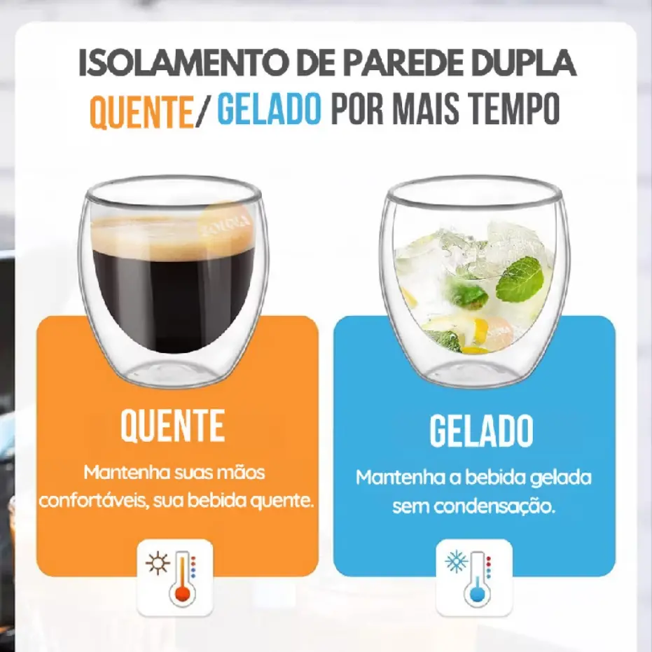 Kit 6 Copos Parede Dupla de Vidro Café Chá Suco